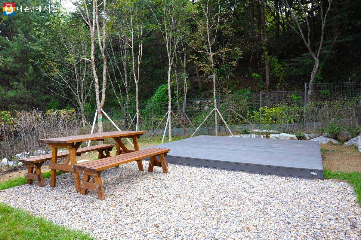 이곳은 다른 캠핑장과 달리 캠핑 사이트에 비치된 테이블과 의자가 이동이 자유로운 분리형이다.