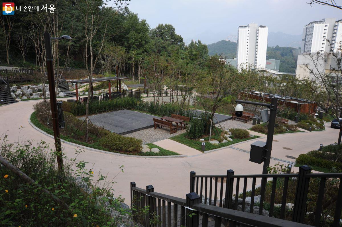 앵봉산 가족캠핑장은 서울둘레길 ‘봉산·앵봉산 제3코스’의 길목이기도 하다. 주변을 아늑하게 감싸 안고 있는 앵봉산의 산세와 지형을 이용해 서울시 최초 테라스형 캠핑장으로 조성했다.