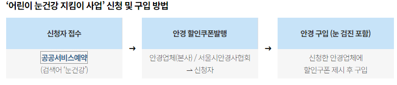 ‘서울 어린이 눈건강 지킴이 사업’은 서울시가 민간기업과 협력해 서울 거주 초등학생 이하 어린이들에게 눈 검진(시력검사)과 안경 구입 시 최대 20%의 할인을 지원하는 사업입니다.