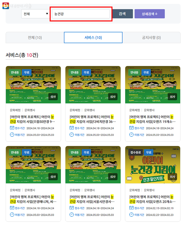 초등학생 이하 어린이들의 눈건강을 위핸 서울시가 시력검사 및 안경구입비용을 지원합니다.