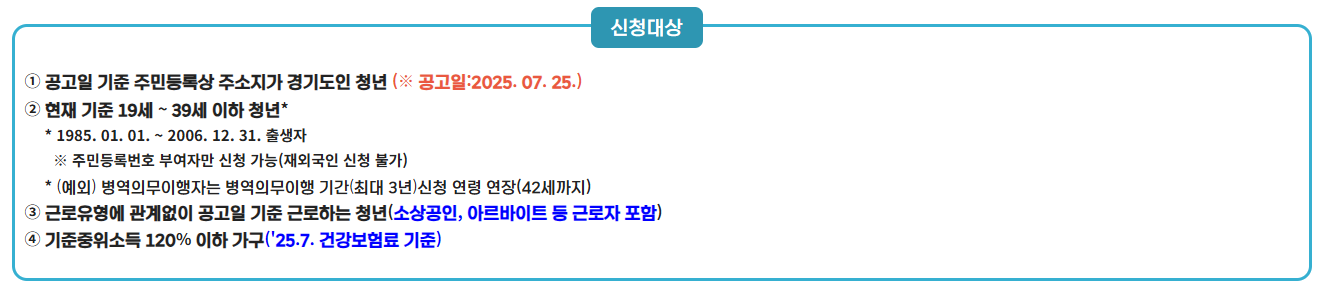 * 나이: 신청일 기준 1985년 5월 25일 ~ 2006년 5월 24일 출생자 (남성은 군 복무 기간에 따라 최대 42세까지 가능)