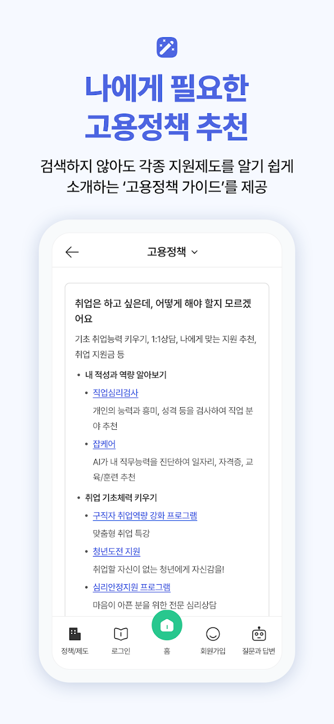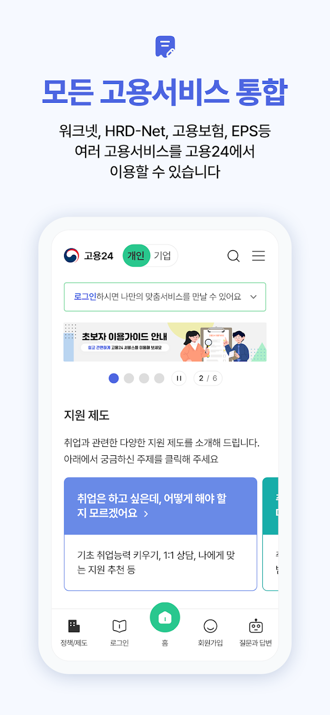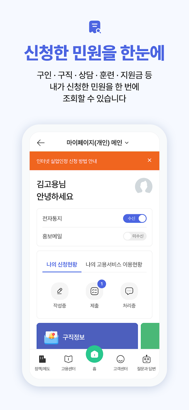 * 실업급여 신청 자동안내 서비스: 퇴사 후 필요한 절차, 서류, 신청일 등을 문자나 앱으로 안내받을 수 있습니다.