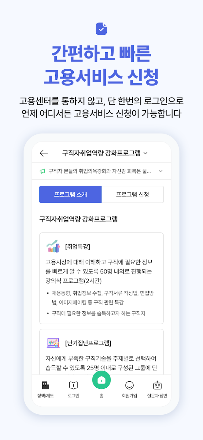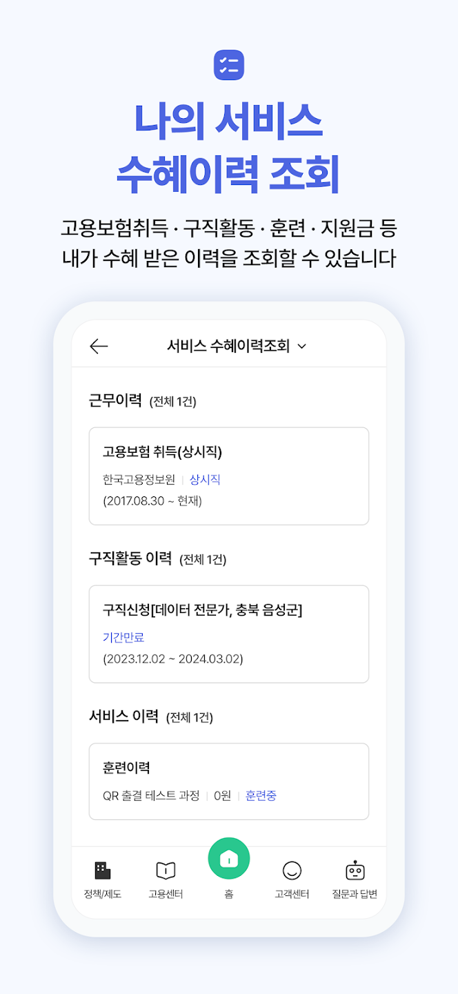 스마트폰만 있다면 언제 어디서든 손쉽게 고용보험 가입이력을 확인할 수 있습니다.