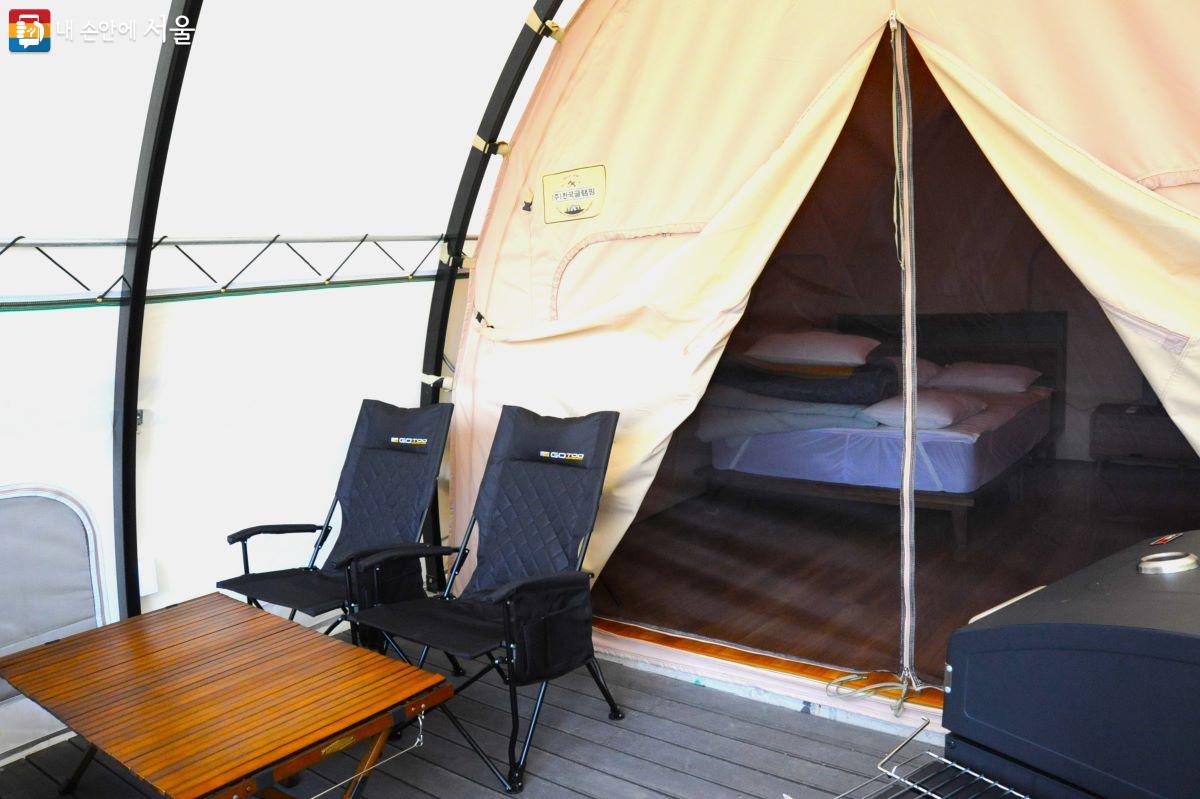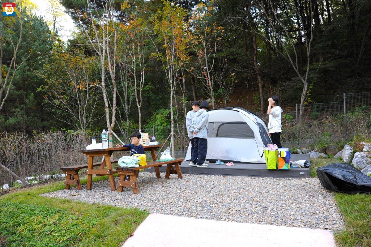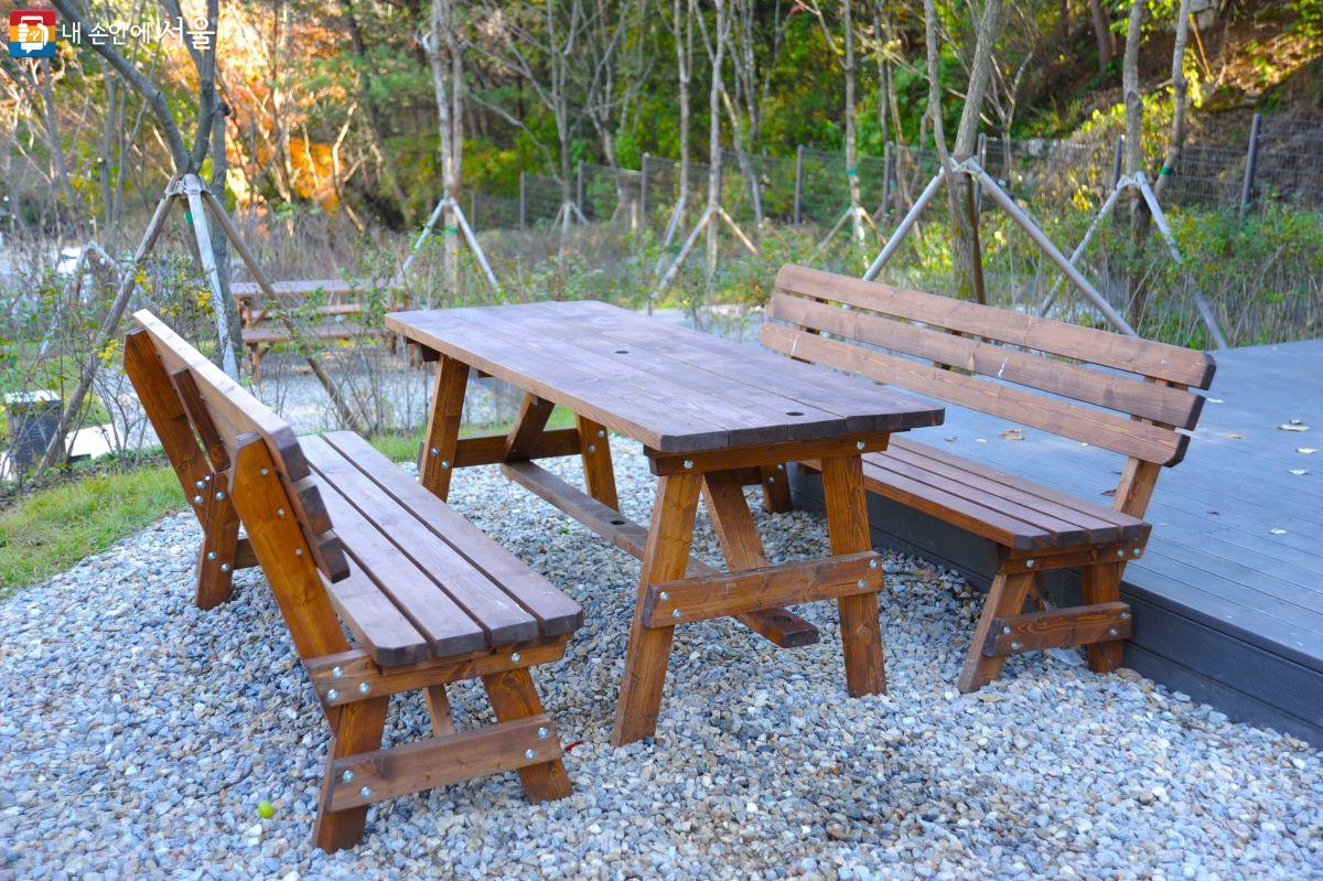 이곳은 다른 캠핑장과 달리 캠핑 사이트에 비치된 테이블과 의자가 이동이 자유로운 분리형이다.