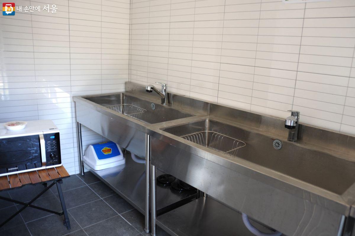 곳곳에 개수대가 설치돼 있고 관리동에는 공동 사용이 가능한 전자레인지와 온수 사용이 가용한 식기 세척대가 설치돼 있다.