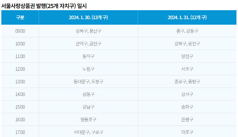 2024년 서울사랑상품권 연간 발행 일정 안내