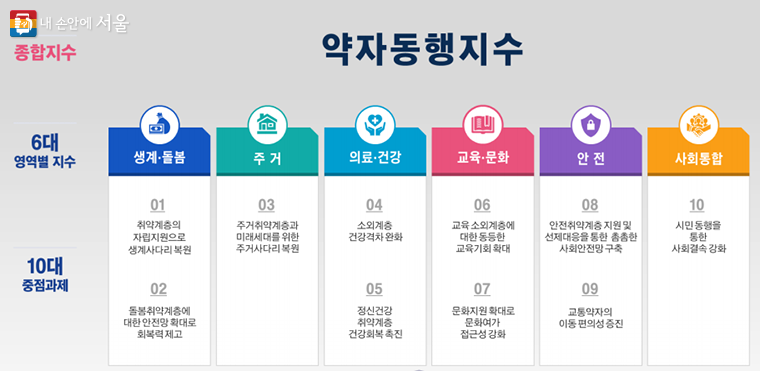 서울시가 ‘약자와의 동행’ 정책을 평가·활용하는 ‘약자동행지수’를 개발했습니다.