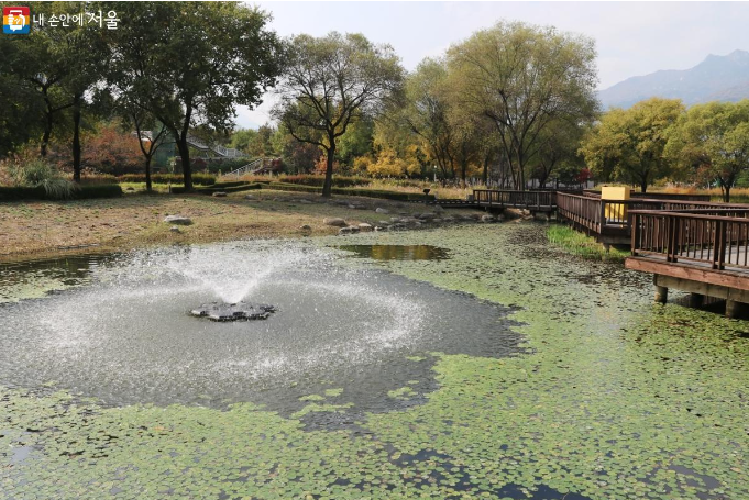 오후 1시경에는 습지 한가운데에 설치된 분수가 작동되면서 가을 햇살 아래 반짝이는 물보라를 감상할 수 있다서울창포원은 경사로가 거의 없는 완만한 산책길이 대부분이기에 유아차나 휠체어가 다니기에 좋다.