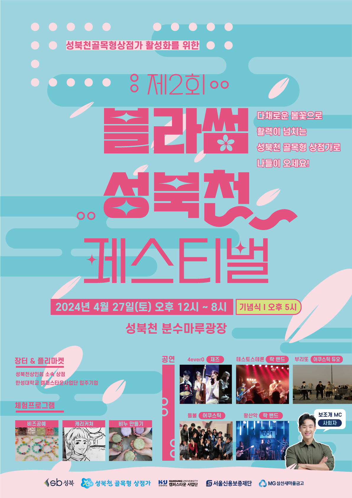 성북천 골목형 상점가 활성화지원을 위한 제2회 블라썸 성북천 페스티벌이 개최됩니다.