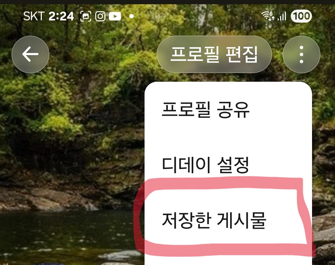 - 프로필 편집(또는 우측 상단 점 3개 메뉴 → 설정 → 프라이버시)