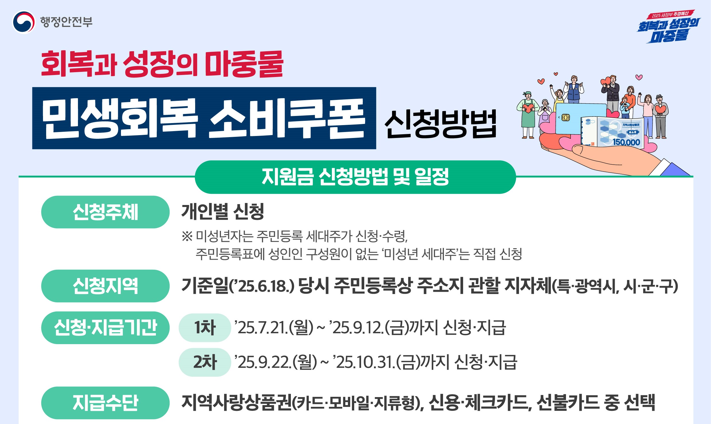 * 특례: 1인 가구, 자녀 교육비 부담 큰 맞벌이 가구 등은 소비쿠폰 추가 지급 가능성