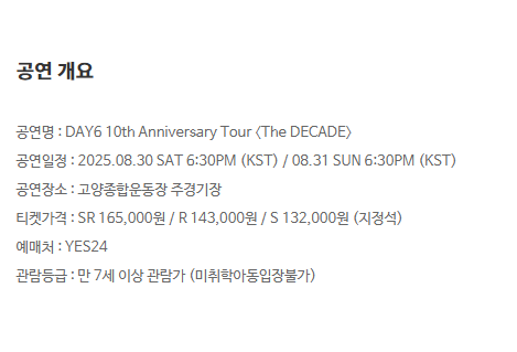2025 데이식스 고양 콘서트: 10주년 기념, The Decade! 티켓팅 정보 총정리