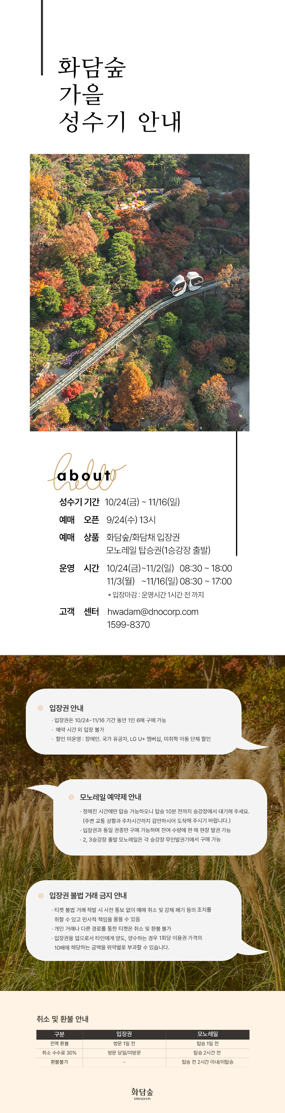 | 예매 상품 | 화담숲/화담채 입장권, 모노레일 탑승권(1승강장 출발) |