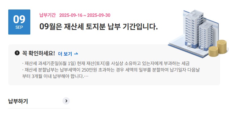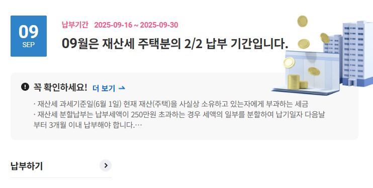 💡 2025년 기준 납부일은 7월 16일 ~ 31일 / 9월 16일 ~ 30일입니다.