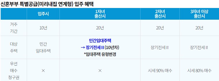 신혼부부의 경우 추가 혜택과 연계되어 더 유리한 조건으로 장기 거주가 가능하다는 점도 중요한 특징입니다.